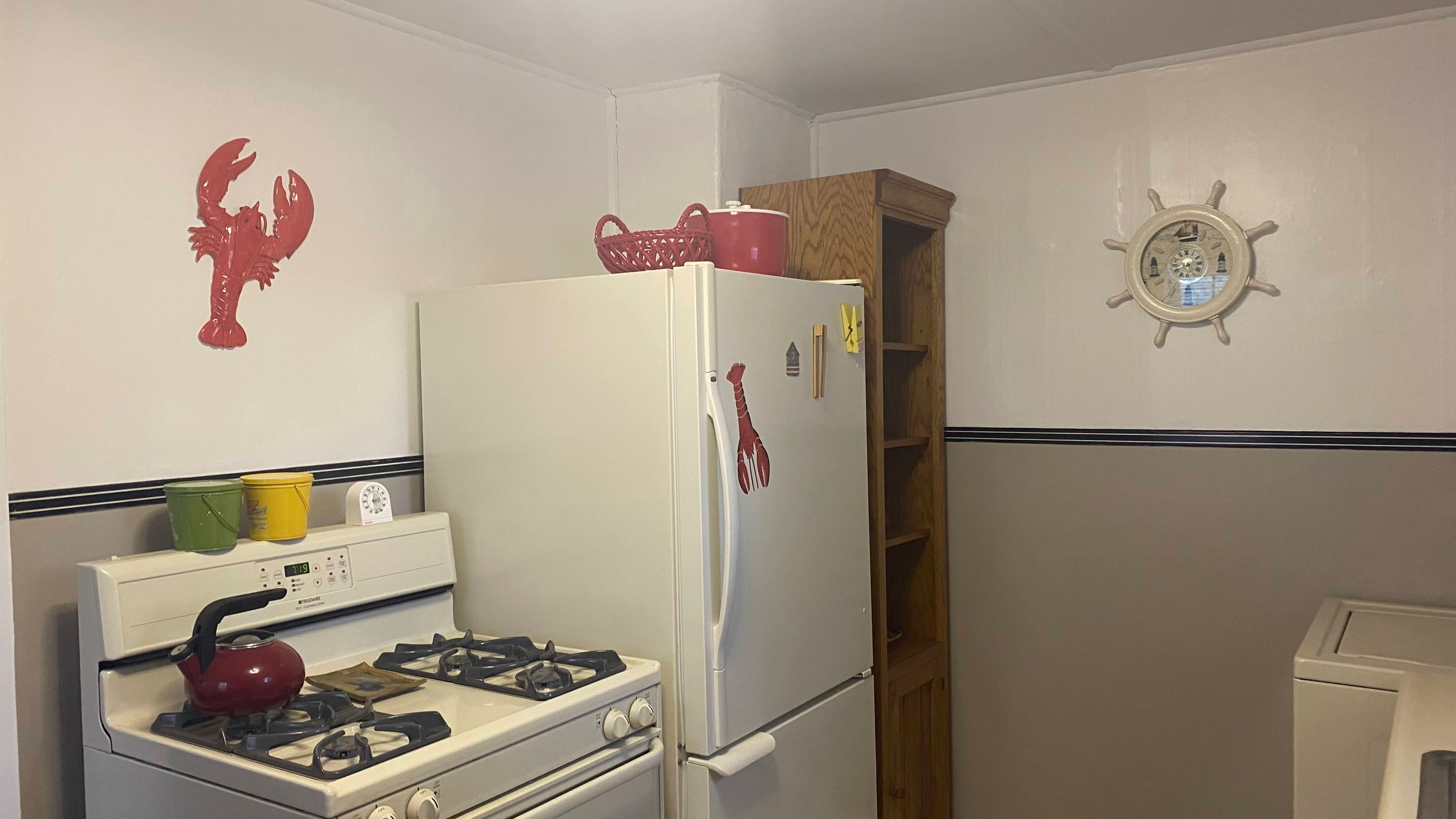 Fully equipped kitchen: coffeemaker, coffee grinder, microwave oven, toaster oven, cooking basics, pots & pans, refrigerator, gas cooking range, dishes & cutlery, basic staples (oil & vinegar, salt & pepper, sugar, condiments, complementary 44 North Coffee beans).